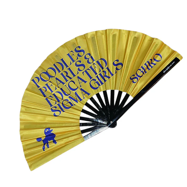 Show off your Sigma pride with the Poodles, Pearls & Educated Sigma Girls Clack Fan by Shady B Fans! This stunning 25″ hand fan celebrates the elegance, intelligence, and sisterhood of Sigma Gamma Rho Sorority, Inc. Designed in the signature royal blue and gold, it’s the perfect statement piece for Homecoming, step shows, or any event where you want to shine. The one-sided print design is lightweight, durable, and easy to carry—ideal for keeping cool while showing your Sigma sophistication. Whether you’re representing your chapter or just embracing your inner poodle, this fan delivers that fierce CLACK every Sigma woman loves. Stay cool, stay classy, and CLACK with pride!
