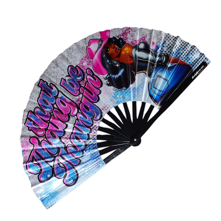 Power. Confidence. Unstoppable energy. The That Thang Be Thangin’ Clack Fan is made for women who run the room and command attention. Measuring 25 inches wide when open, it delivers a bold clack and a refreshing breeze with every flick. Closed, it folds to a sleek 13 inches—perfect for carrying with confidence.